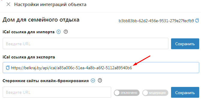 Шаг 7. Для корректной синхронизации добавьте ссылки на календари со всех сайтов, где размещён объект.