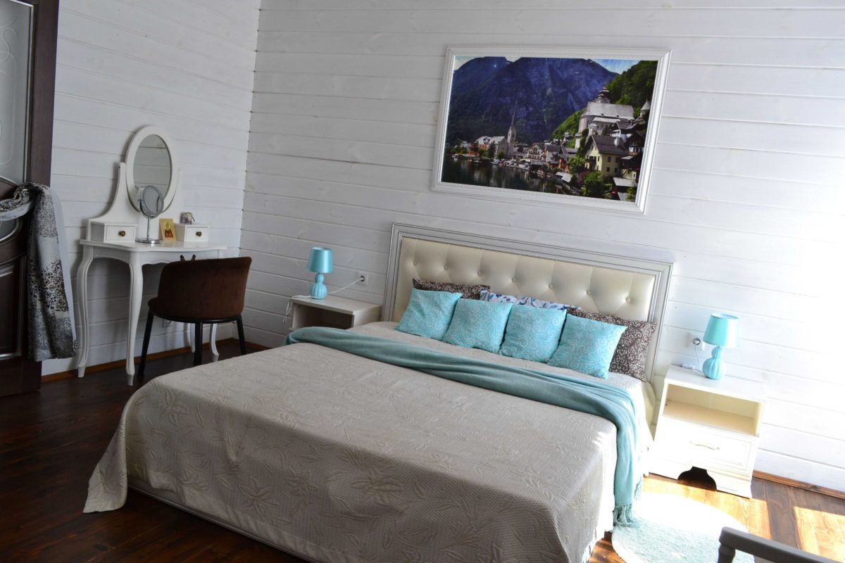 2-ой этаж — 2 спальни с двухспальными кроватями, одна спальня с двумя односпальными диванами и одна спальня с двумя односпальными кроватями + душевая с совмещеным туалетом и биде и большая открытая террасса
