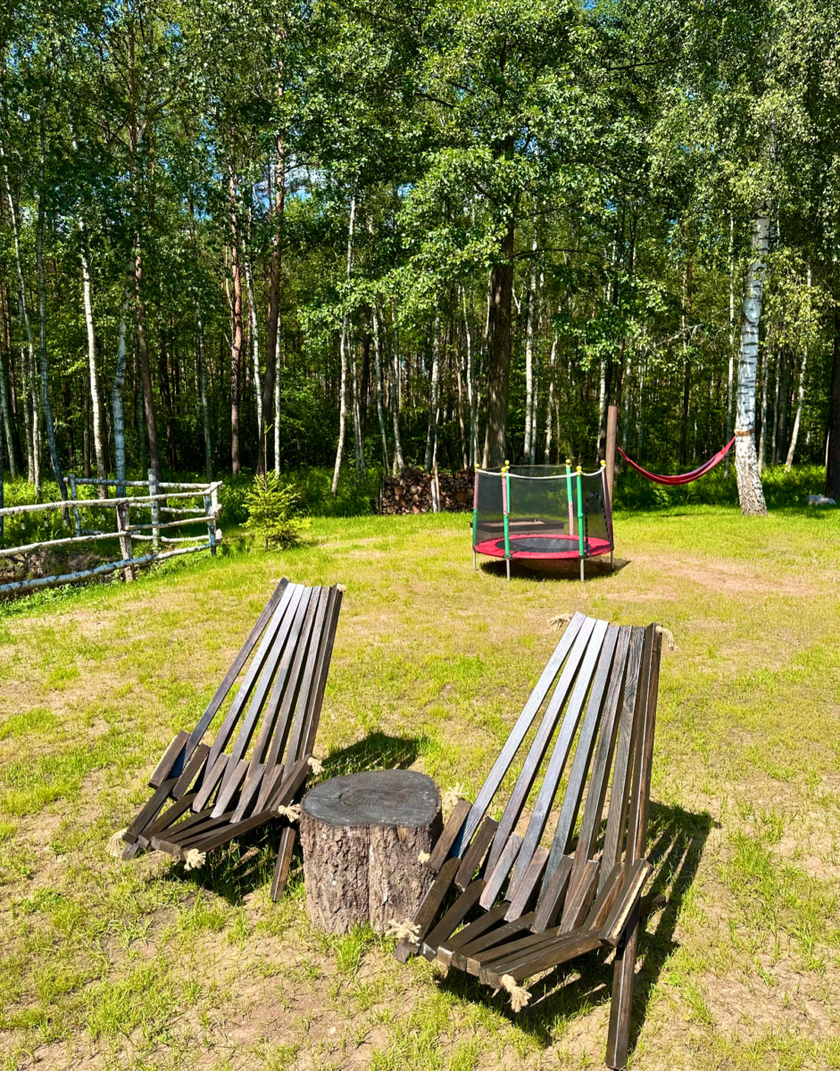 Для детей есть песочница, батут, гамак, качели.