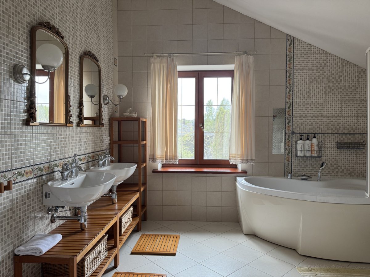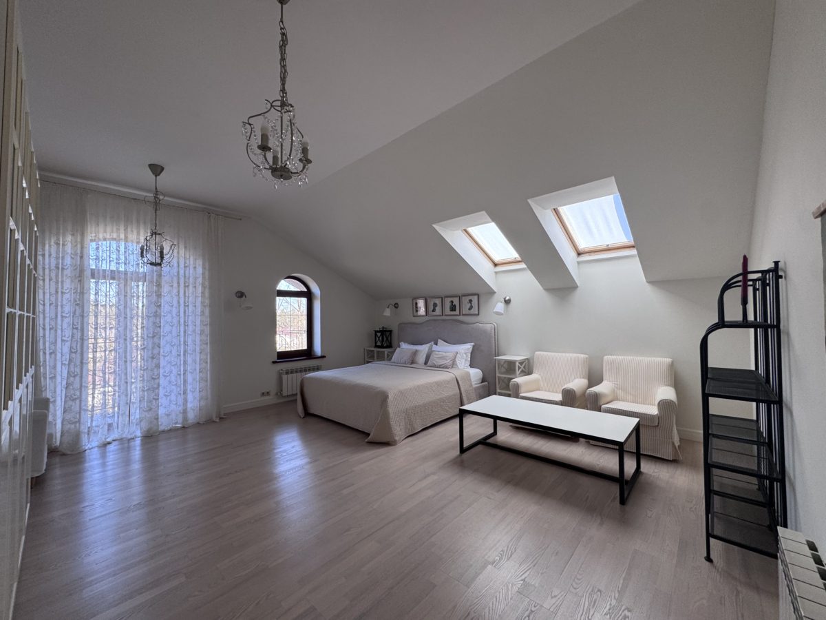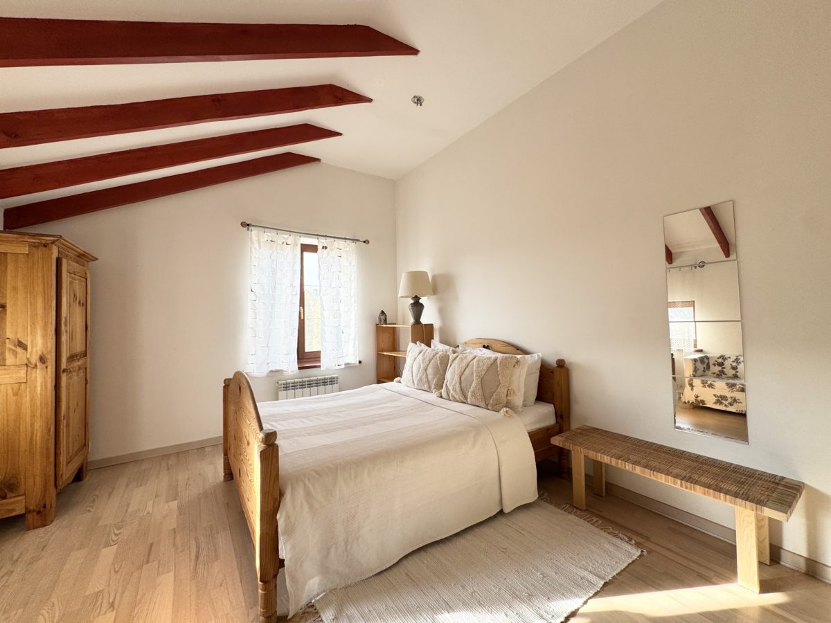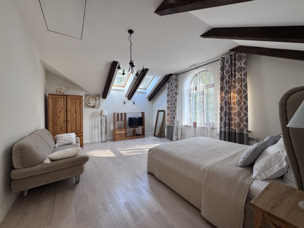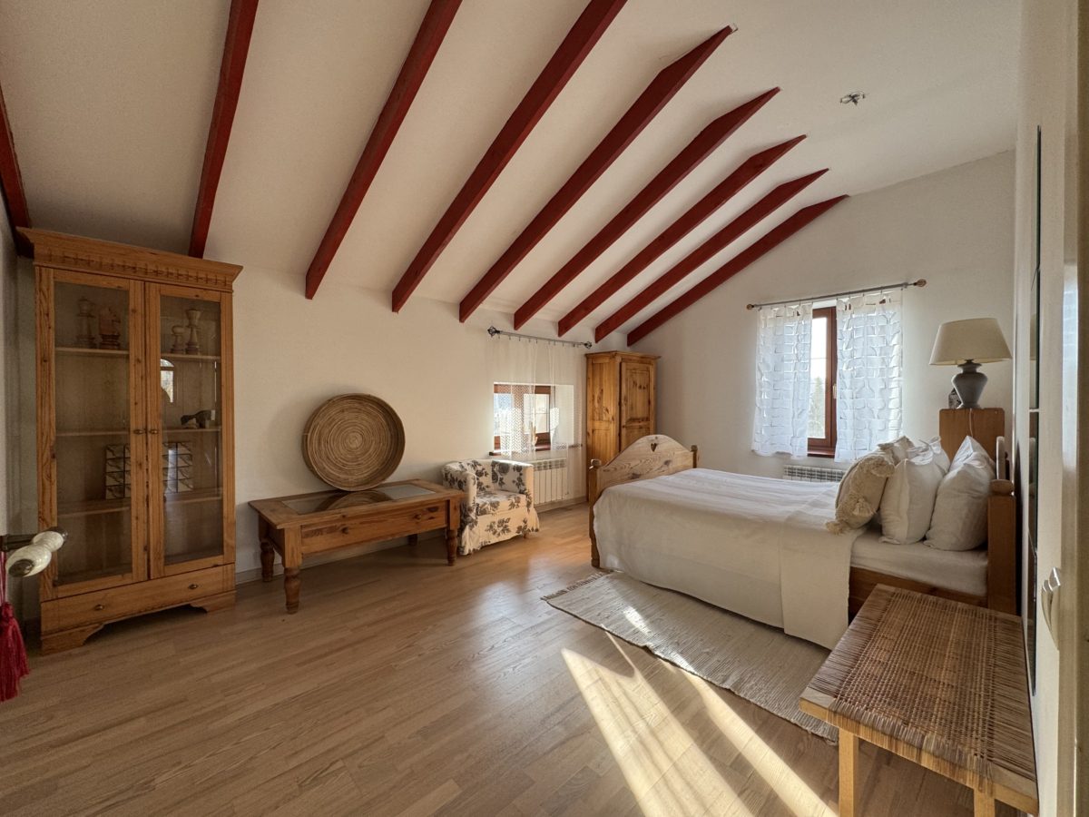 Второй уровень отведен под спальни. Четыре светлые спальные комнаты с двуспальными кроватями и потрясающим видом на лес. Просторная ванная комната с ванной, биде и туалетом.
