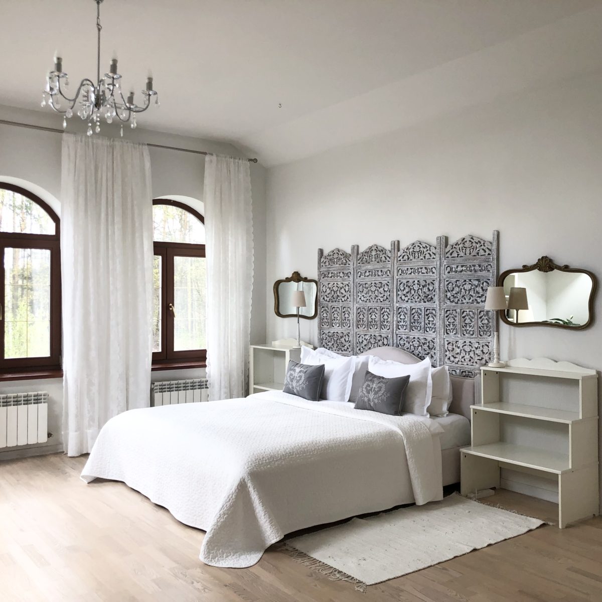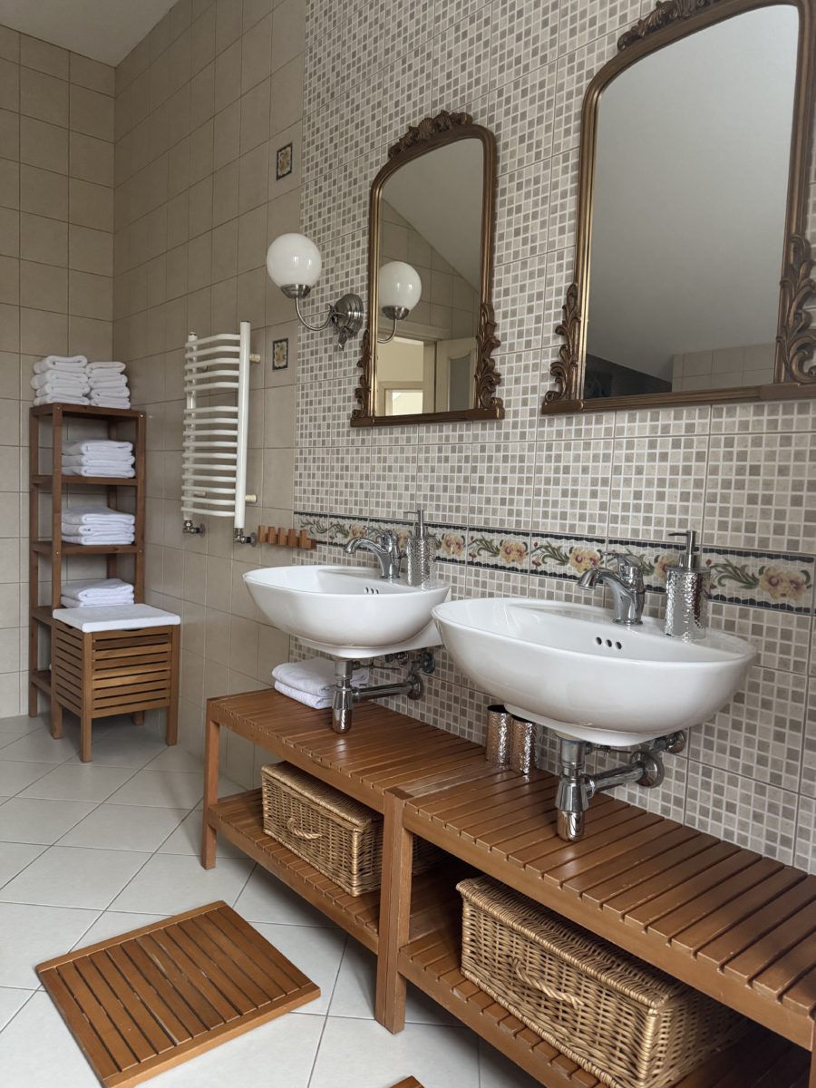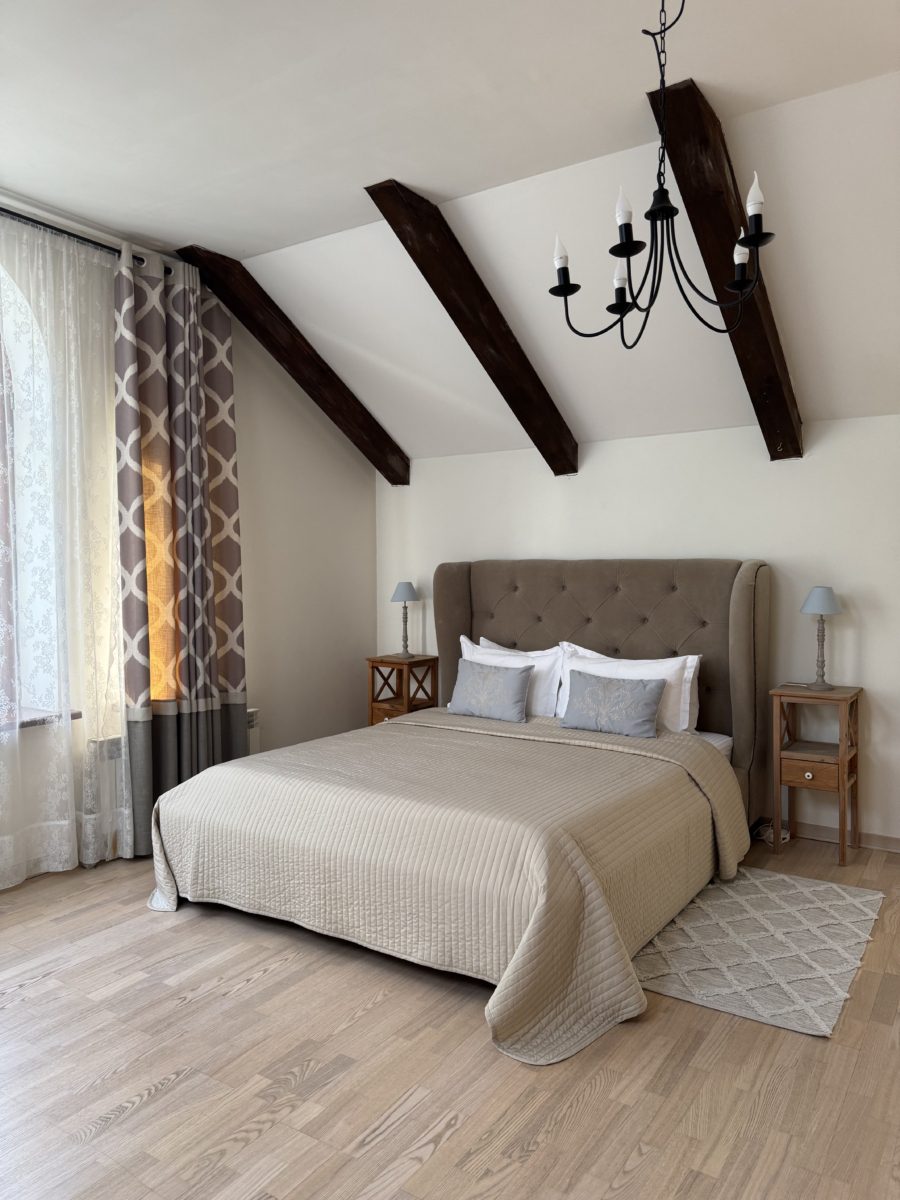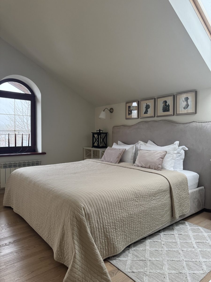 Второй уровень отведен под спальни. Четыре светлые спальные комнаты с двуспальными кроватями и потрясающим видом на лес. Просторная ванная комната с ванной, биде и туалетом.