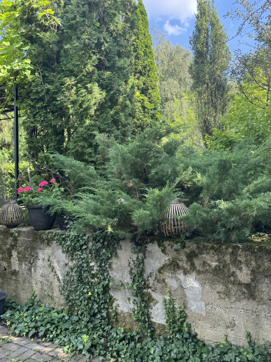Простота важный психологический и духовный аспект этого места. Интерьеры виллы представляют собой легкое убранство, светлые тона, большое количество окон и много воздуха. Экстерьер виллы идеально гармонирует с окружающим ландшафтом. Виллу окружает великолепный сад, с частной коллекцией реликтовых растений, которые усиливают алхимию этого места.