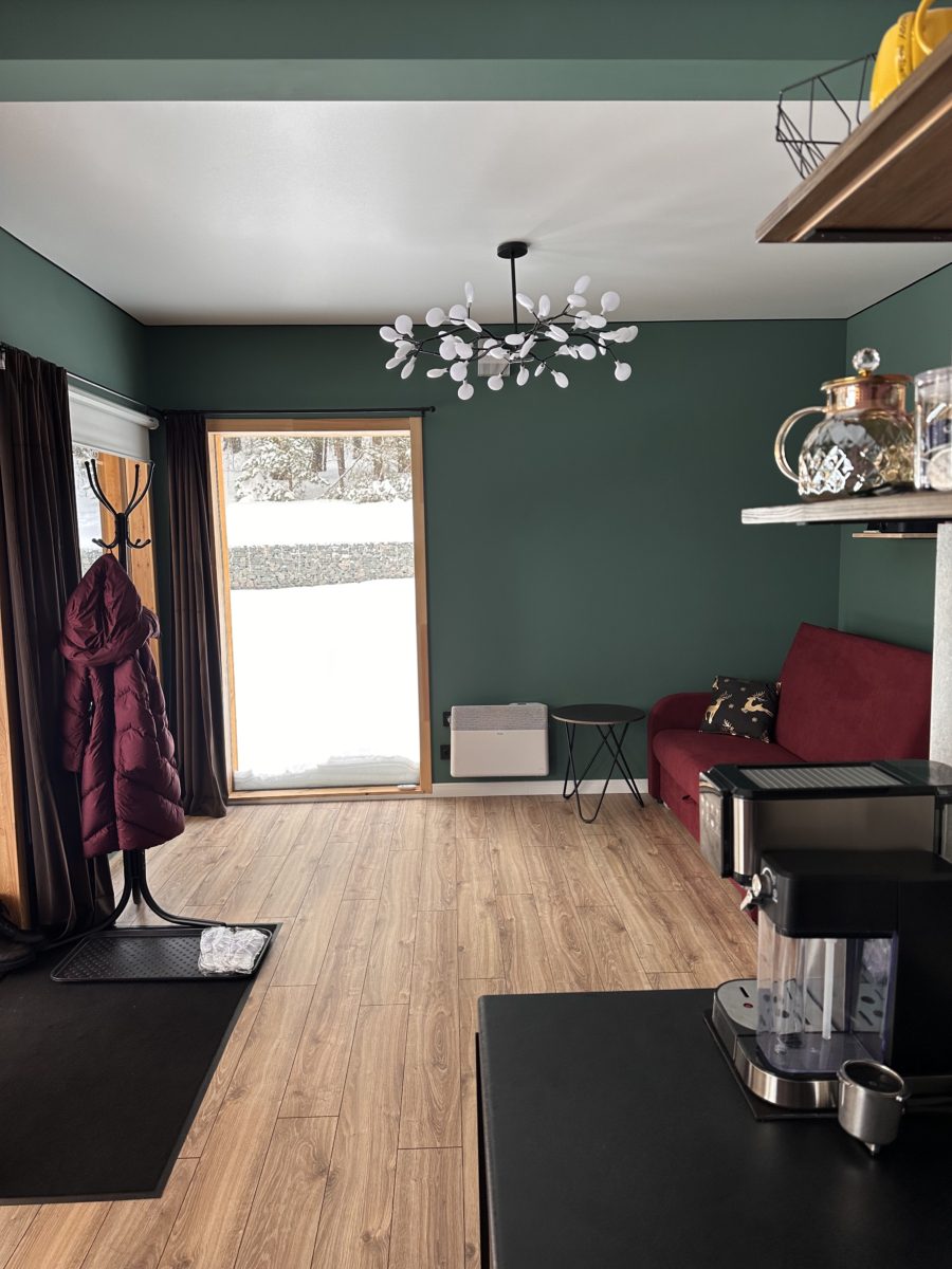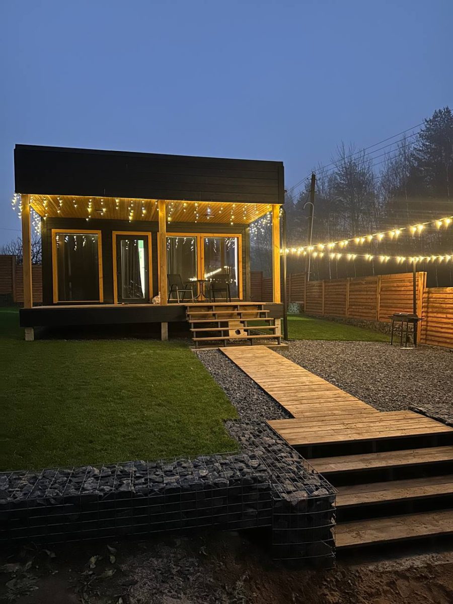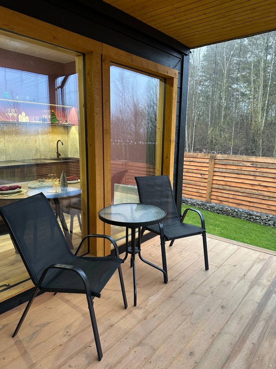 Большие окна создадут ощущение интеграции с красивым сосновым лесом, который начинается прямо на нашем участке размером в 18 соток. А изолированная спальня с двуспальной кроватью 200х160 даст возможность уютного отдыха и личного пространства. Гостям бесплатно предоставляется белоснежное чистое постельное белье.