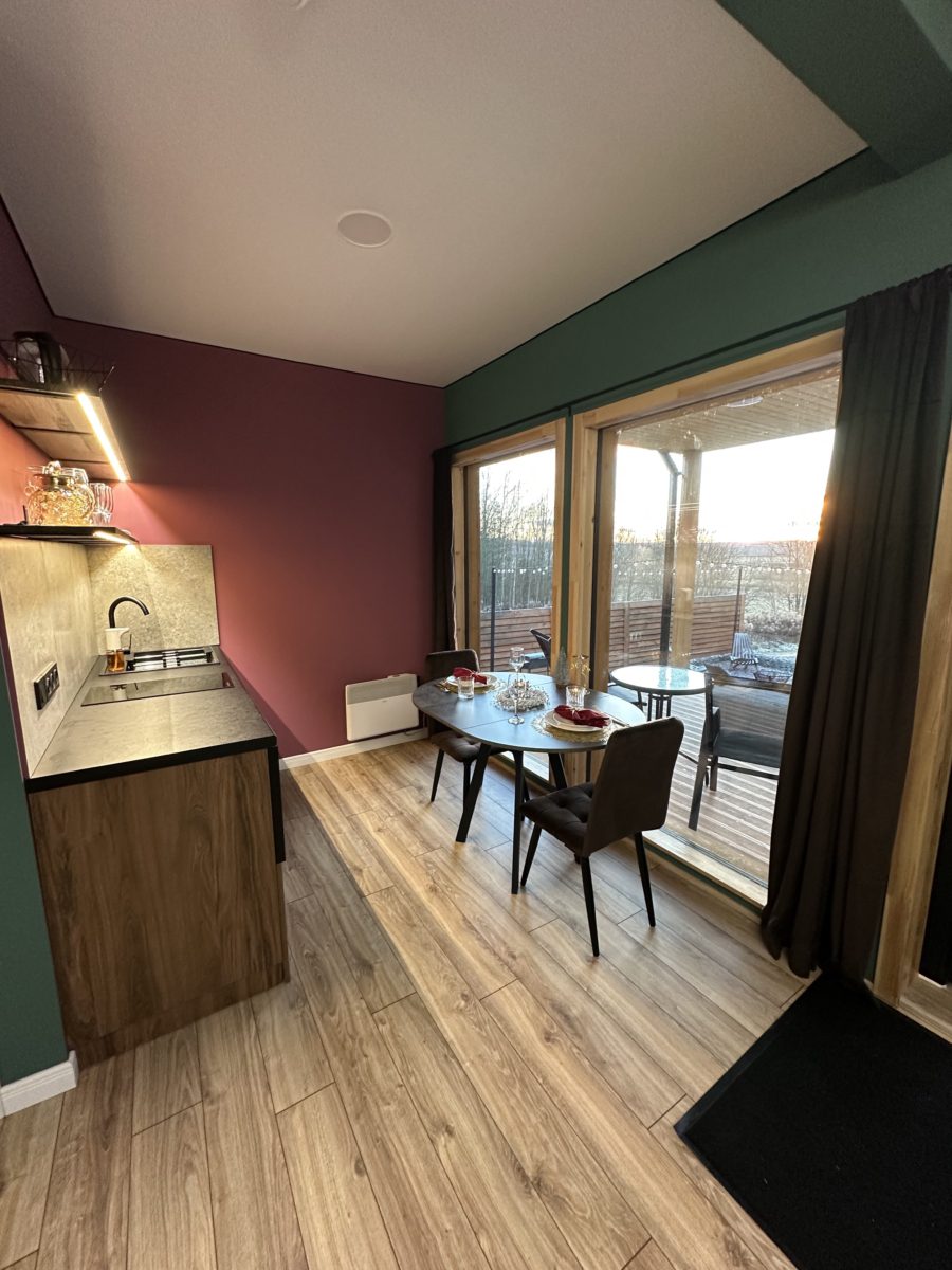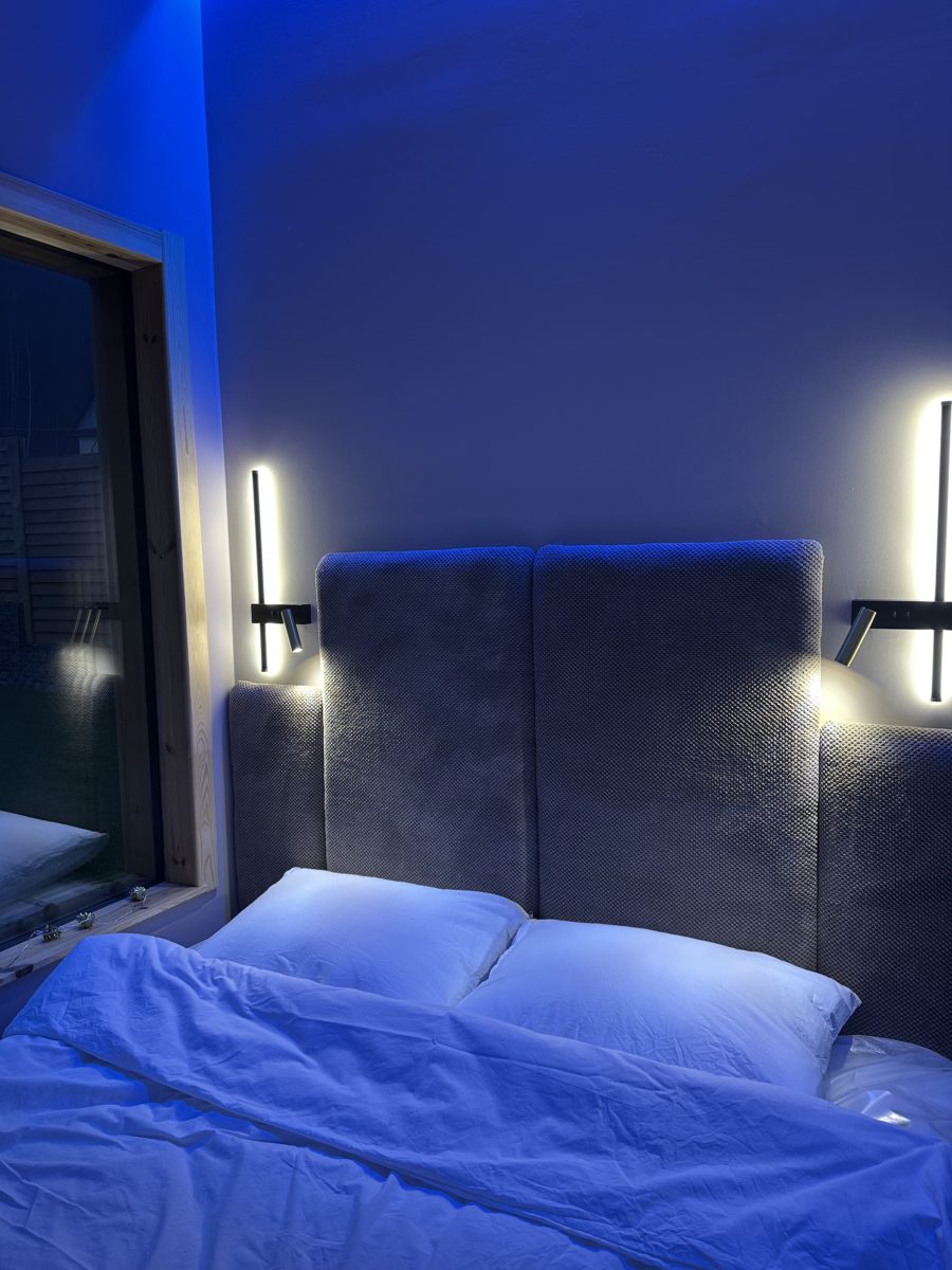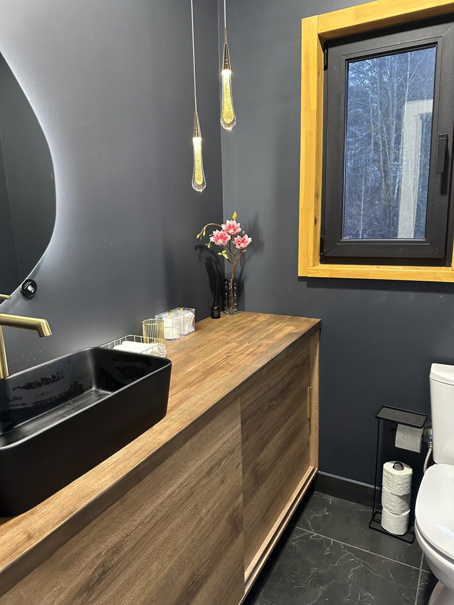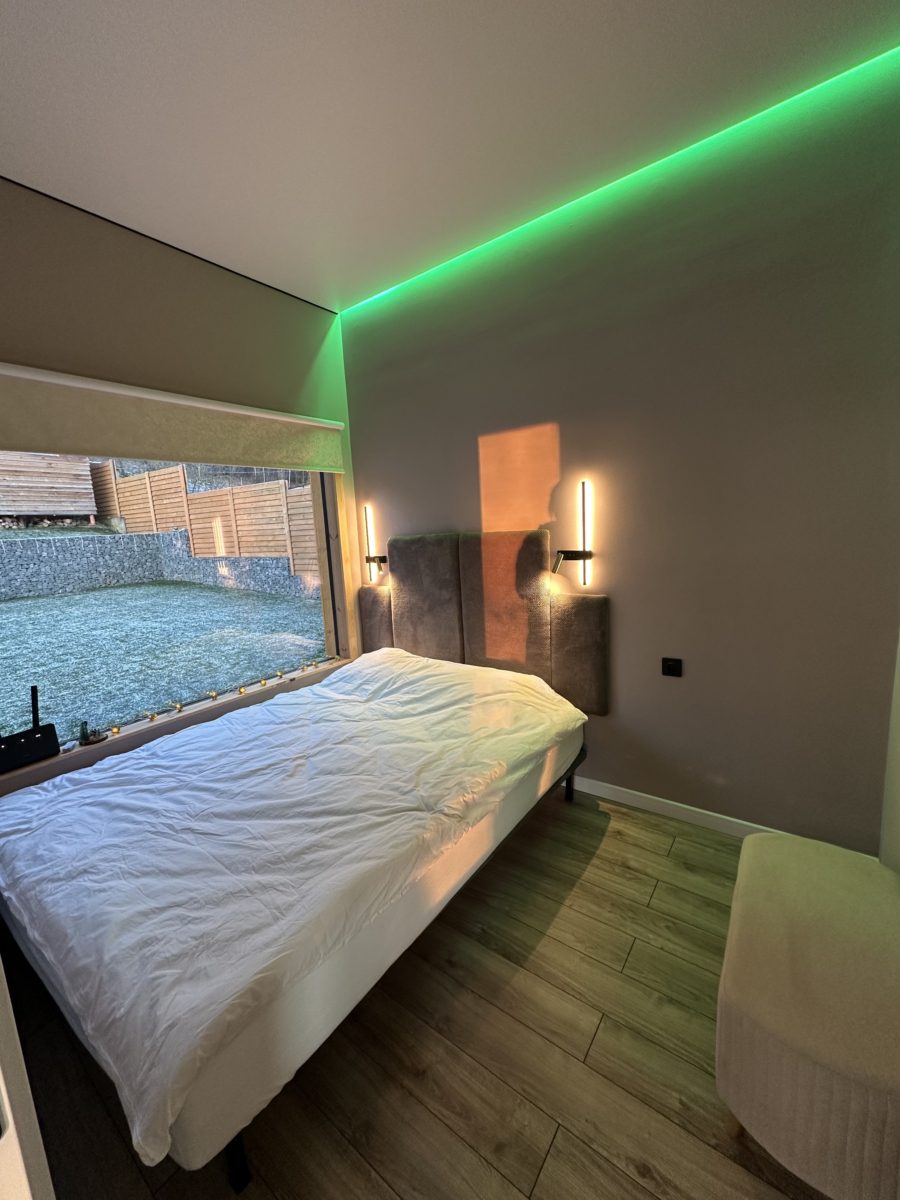 Большие окна создадут ощущение интеграции с красивым сосновым лесом, который начинается прямо на нашем участке размером в 18 соток. А изолированная спальня с двуспальной кроватью 200х160 даст возможность уютного отдыха и личного пространства. Гостям бесплатно предоставляется белоснежное чистое постельное белье.