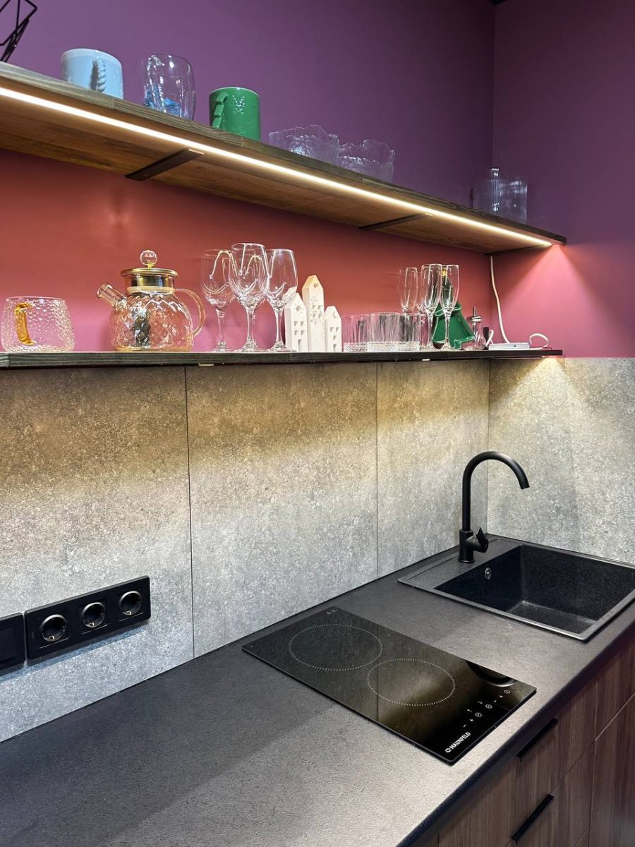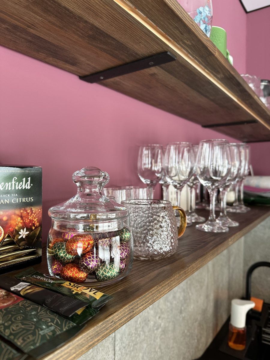Кухня со всей необходимой посудой, чайником, холодильником, варочной панелью, микроволновой печью, кофемашиной. Гостям бесплатно предоставляется чай, кофе, сахар, соль, молоко, питьевая вода.