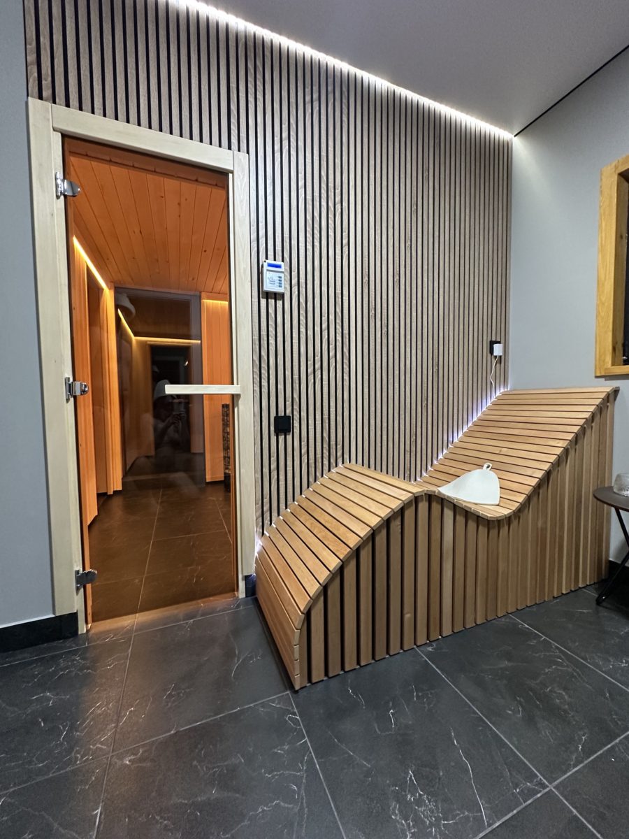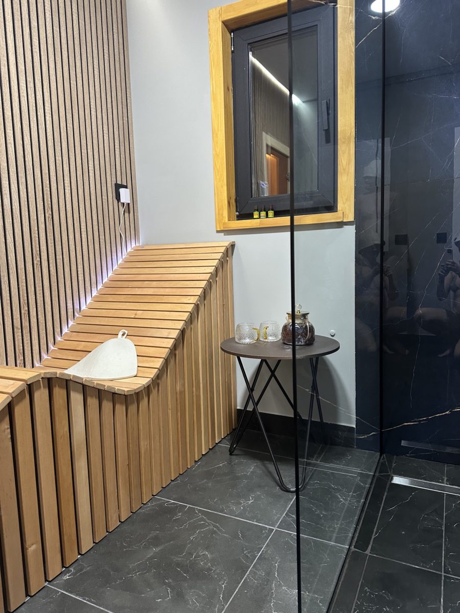 В доме есть финская липовая сауна с электрокаменкой. Нет необходимости топить и поддерживать тепло дровами. Вход в сауну осуществляется прямо из дома. Из сауны есть дверь на улицу — можно сразу и освежиться после принятия тепловых процедур. Гостям бесплатно предоставляется персональные шапочки для бани, персональные тапочки для дома, простыни и травяной чай для бани…